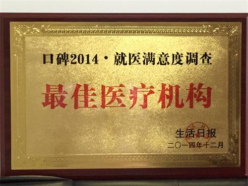 市二院获评“口碑·2014省城医疗机构满意度调查——最佳医疗机构”称号