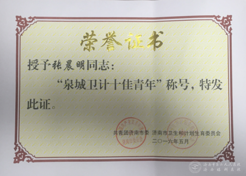 市二院眼科副主任医师张晨明荣获泉城卫计十佳青年荣誉称号
